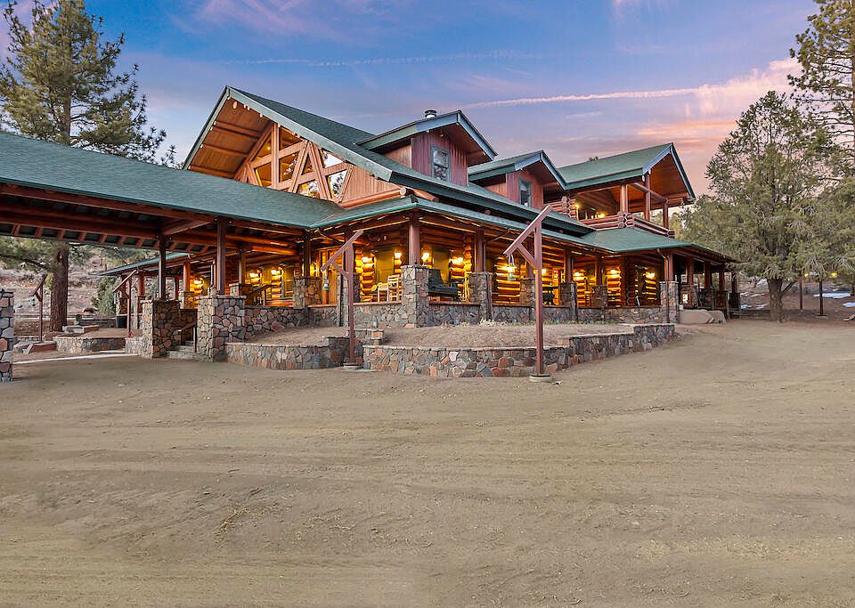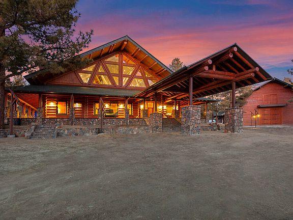 SELLER FINANCING IS AVAILABLE for the Yellowstone of Big Bear. A unique log home on a Pine/Spruce covered 6-acre parcel hidden in the northeast corner of the gated private community of Hamilton Ranch with direct access to national forest. Horseback riding and hiking trails offering ultimate seclusion. Hand Crafted with real 13'' cedar logs and rock found on the land. This home is tight and toasty in winter with three huge wood burning fireplaces and radiant floor heating throughout. 8 total bedrooms and 7 baths. 2 master suites on the main floor and 1 upstairs, with an adjoining patio, for a total of 3 on suite bedrooms. Chef stove and built-in dining banquette for a crowd. Inside are 32-foot open beam ceilings and a surrounding catwalk that accesses 5 guest bedrooms. Outside a 1750 sq ft exterior covered porch with cedar 3x6 decking surrounding the home giving protection from the elements and lots of outdoor living space. A 5,200 sq ft horse & equipment barn to work and play in. Come See it in person or Click on the 3D Tour to walk thru!