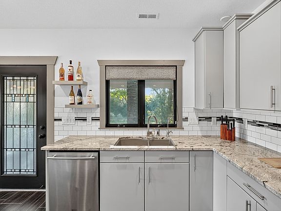 Zero-entry homeStone patioPicturesque covered bridgeMature treesWraparound windowsUpdated kitchenBreathtaking iowa sunsets