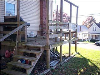 Great Home on Reitz Hill, 3 bedroom 1.5 baths, vinyl sided, deck, covered front porch with Oak Door leading into Living Room with stained glass windows, Fireplace and original wood floors, newer kitchen with Island and Dining Area.