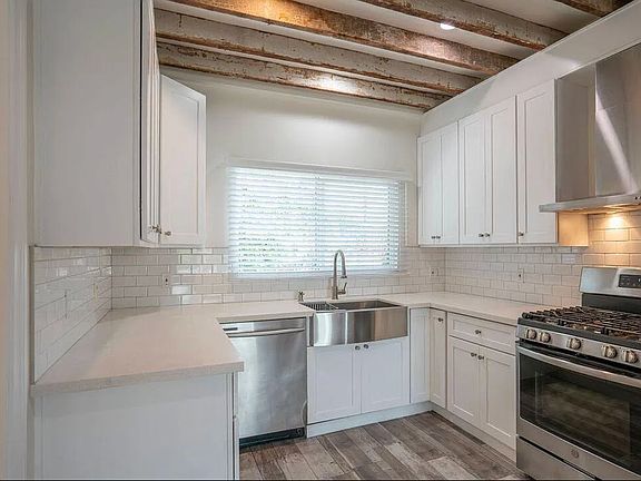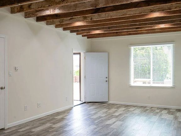 Studio with remodeled kitchen, stove, bathroom, flooring, off street parking, in unit washer/dryer, shared yard, and pet friendly too. Quartz countertops, white cabinets adorn the kitchen. Though home is upstairs of a two story house, it has tall cathedral ceilings. (pictures shown of wood detail are of unit downstairs)