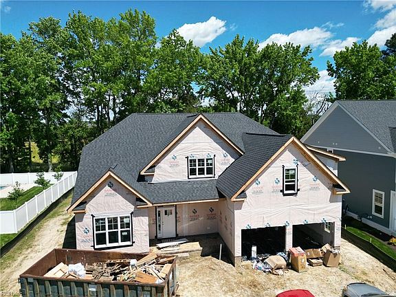 “New Home for sale - a WATERFRONT custom home community located on the Western Branch of the Elizabeth River. Stone accents with Hardie-plank exterior, Cottage style home- First floor primary bedroom, very open Floor Plan, Great Room, Gourmet Kitchen with large center island, 36” gas cooktop with built-in microwave/oven, corner pantry, 9 ft ceilings first/second floors. Luxury bath w/ ceramic curb-less shower and free standing tub! 1st floor study, hardwood floors cover main floor, granite counter tops, huge covered back porch/dining area with stamped concrete. Second floor large Bonus/recreation room (4th bedroom), two additional bedrooms (one en-suite bath) and hall bath. Yard fully sodded and irrigated! Many special features included. Sasser Construction has been a member of the Southern Living Custom Builder Program for over 30 years and was the awarded the SL Custom Builder of the Year.”