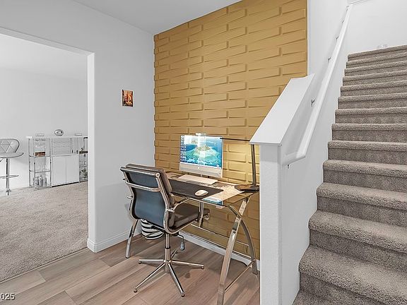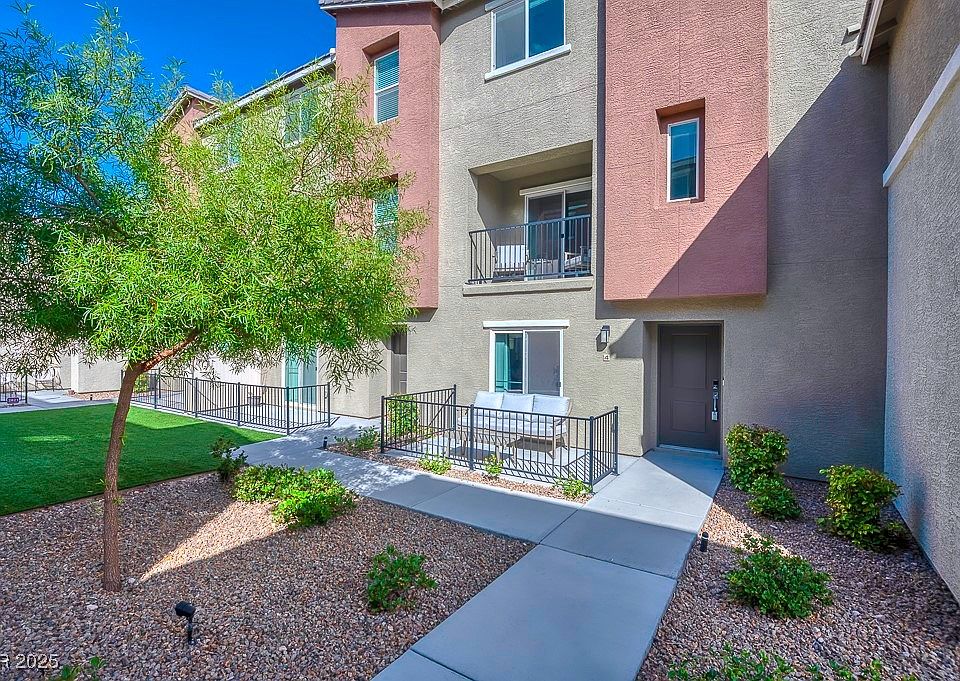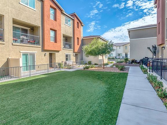 Immaculate townhouse, like new. Resort style amenities! This property features a modern floorplan with contemporary finishes. Three story townhouse with flex-space/den on first level. The second level features an open concept kitchen with an oversized island, dining room and main family room. All bedrooms are on the third level. Primary suite with walk-in shower. 2 car garage with auto door opener. HOA includes: water, cable, internet, community pools, landscaping maintenance, playground areas, and 24/7 roaming security. Conveniently located minutes from major resorts, Raiders Stadium, shopping and more.