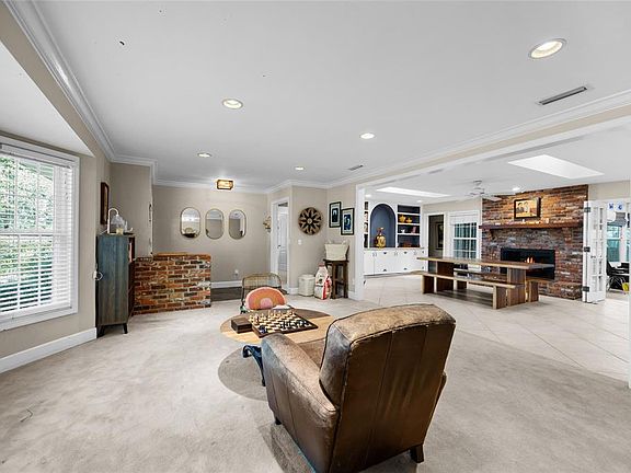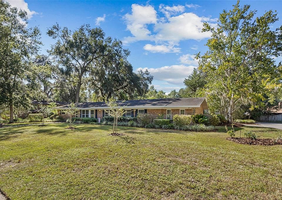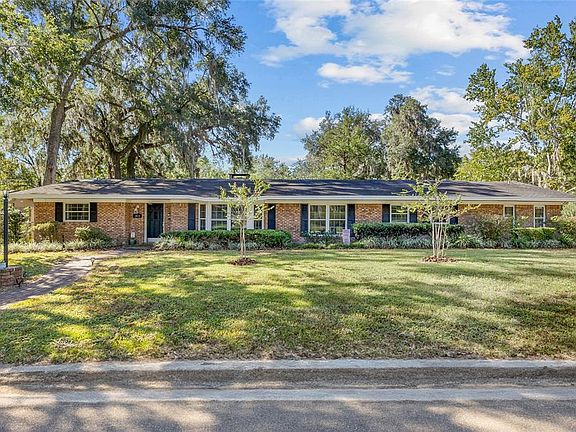 Tucked away on a quiet dead-end street in a peaceful neighborhood, this stunning 5-bedroom, 4-bath brick home offers the perfect blend of space, privacy, and convenience—just 2 miles from the University of Florida! Step inside to more than 3,000 sq. ft. of light-filled living space, highlighted by vaulted ceilings and multiple skylights. The large master suite is a retreat of its own, featuring a spa-inspired bathroom with quartz countertops, double sinks, a soaking tub, oversized walk-in shower, and an expansive closet. All bedrooms and closets are generously sized, with the fifth bedroom offering private access—ideal for a mother-in-law suite, guest quarters, or rental opportunity. The kitchen boasts custom wood cabinetry, stainless steel appliances, and a window overlooking the home’s show-stopping sunroom. With stained-glass accents, exposed beams, a mini-split system, and panoramic windows framing the backyard, the sunroom provides the perfect year-round gathering space. A gorgeous brick wood-burning fireplace. Out back, enjoy Florida living on the expansive patio or relax in the screened-in pool and hot tub, with recent upgrades including a new $10k pool pump. The private, fenced yard is perfect for enjoying Florida living at its finest. The two-car garage features a side workshop area, ideal for hobbies or storage. Additional updates include $15k in electrical improvements for peace of mind. No HOA. IQ Fiber high internet service. Just minutes from scenic trails, county schools, Santa Fe College, UF/Shands, the VA, and HCA Hospital. This home combines character, updates, and an unbeatable location in a family-friendly neighborhood with welcoming neighbors. Truly a rare find so close to UF!