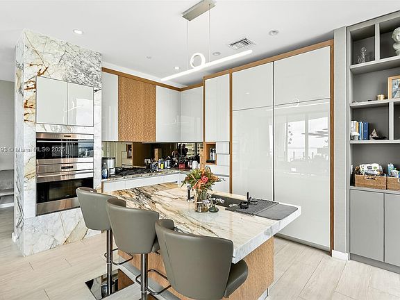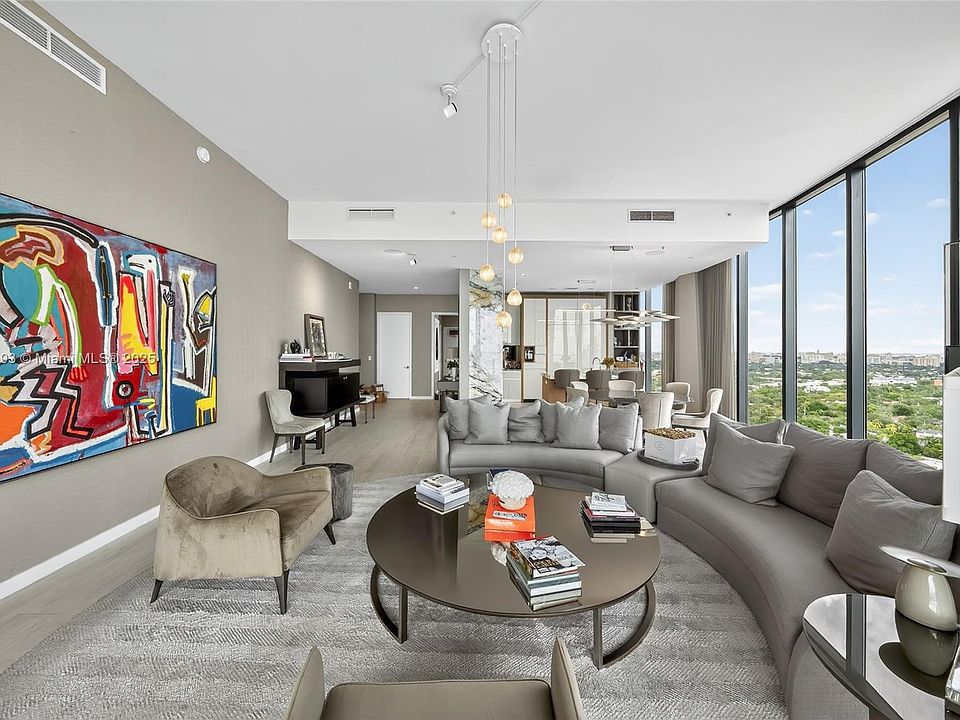 Positioned on a premier penthouse level, this residence showcases sweeping views of Biscayne Bay from its spacious, elegantly designed interiors. Striking 12-foot ceilings and light-filled living areas are enhanced by custom furnishings by Artefacto. A private elevator opens into a dedicated foyer leading to 3 beautifully appointed bedrooms and 3.5 baths. Park Grove is set on five acres of lushly landscaped grounds, featuring 50,000 SF of resort-style amenities. Residents enjoy multiple pools, a full-service spa, state-of-the-art fitness facilities, business lounge, theatre, outdoor gardens, pool side bistro, and close proximity to marinas. This exceptional development combines elevated architecture, unparalleled amenities, and a prime waterfront location in the heart of Coconut Grove.
