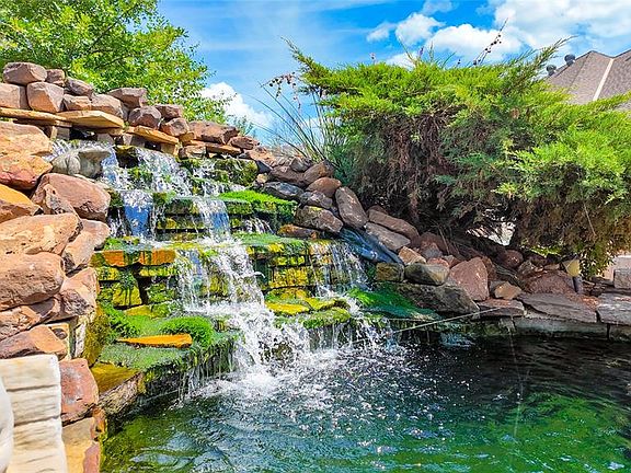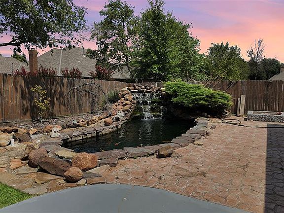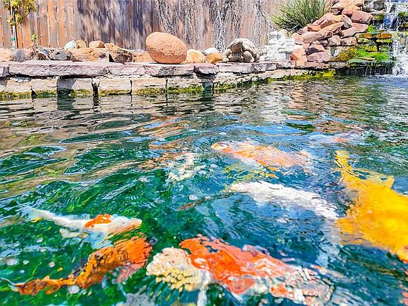 Koi pondBackyard oasisPaved side yardTall ceilingsNatural light