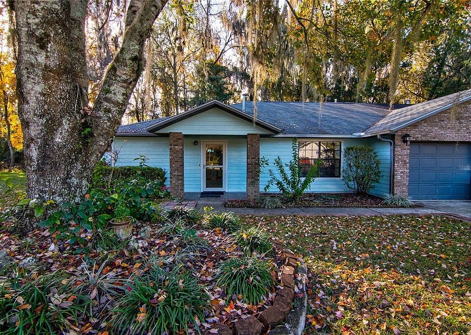 Discover this well-maintained home, perfectly located at the end of a quiet street. It features a practical layout with two bedrooms, two bathrooms, and a bonus room. The home has been recently updated, boasting newer kitchen countertops, a fresh coat of paint both inside and out, and a new washer and dryer set. The living area, bright and airy due to two skylights, follows an open-concept design. The kitchen overlooks the living and dining spaces, complete with vaulted ceilings and a cozy gas fireplace. The primary bedroom is spacious, offering a walk-in closet and an en-suite bathroom with dual vanities, a walk-in shower, and a jetted tub. Additionally, there's a utility room near the kitchen, leading to a one-car garage. Step into the private Florida room, or unwind on the back deck overlooking a fully fenced backyard. The neighborhood further enriches your living experience with a community garden and a walking trail leading to a lush nature preserve. Without the constraints of HOA restrictions, you have the freedom to tailor your space to your tastes. Situated in an unbeatable location, this home is a stone's throw from the University of Florida, UF Health, and the VA Hospital. Commuting is a breeze with easy access to I-75, and leisure options abound with Butler Town Center and Celebration Pointe nearby.