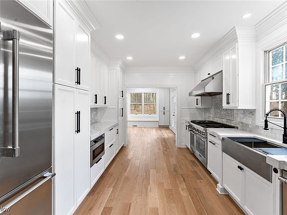 Welcome to your dream retreat! Nestled at the end of a prestigious cul-de-sac, this Georgian property epitomizes grandeur & elegance. Over 5000 sq. ft of expansive living in this home. Enter through the impressive double doors and step into a world of luxury, flooded with natural light and 3/4 hard inch wood flooring throughout most of the main floor. Enjoy Preparing culinary delights in the stunning chef's kitchen, which is newly renovated(2023). New owners will be the first to enjoy custom cabinetry, quartz counters with waterfall edges, and top-of-the-line Thermador appliances. Additionally, the butlers pantry is a great space to enjoy family dinners with views of the backyard and plenty of storage. True fusion of style and functionality.A wood-paneled office provides a distinguished, handsome space, while the formal living & dining rooms exude timeless elegance, perfect for hosting memorable gatherings. The inviting family room beckons with its gas fireplace. Enjoying panoramic views of the serene and lush private 1 acre wooded lot. The main floor enjoys a main floor bedroom and full bath; additionally a large laundry and half bath finish the main floor. The upper levels enjoys four additional bedrooms all newly painted all with their own bathroom and a large room above the garage with a huge walk in closet. The primary suite consists of a gas fireplace, tray ceiling and a unique set up to Pamper yourself in the lap of luxury with his and her bathrooms, offering both convenience and privacy. The newly renovated finished basement adds another layer of allure. Ideal for entertaining, it offers abundant space, wood floors, new bar, backsplash and quartz countertops. The lower level offers a great space for an aupair suite or in-law suite. New 2023 HVAC and HWT. For added convenience, the thermostat, kitchen range & garage doors are WiFi-ready, and the 3-car garage offers a 40-AMP Level 2 EV charger. Embrace the lifestyle you deserve. Welcome home.