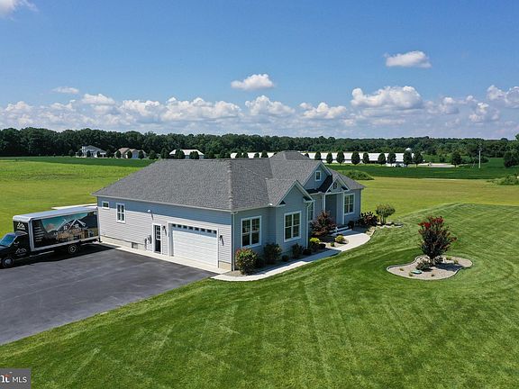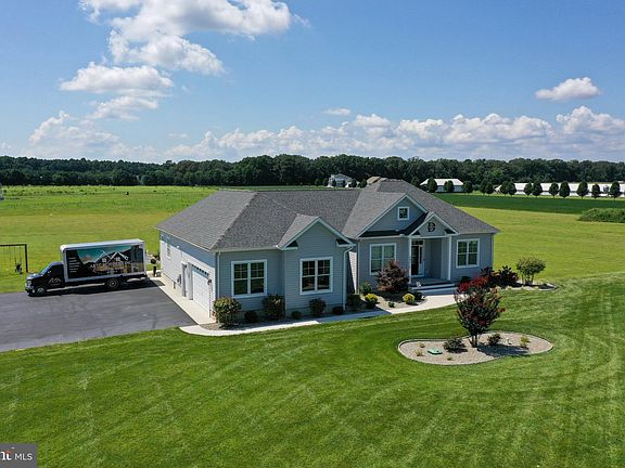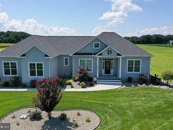 Welcome to a meticulously crafted, four-year-old rancher in the heart of Millsboro, Delaware, custom built by its owner—a construction professional—with the vision of a forever home. Every detail, from premium materials to thoughtful design, reflects exceptional care, with regular maintenance (roof, HVAC, well, septic, termite) keeping everything pristine. Set on 4.3 acres with a full sprinkler system, this property blends space and modern comfort. Step inside to a warm living room. To your left, a cozy bedroom; to the right, two more bedrooms and a full bath. The living room flows into an office, opening to a bright sunroom—perfect for relaxation. The spacious kitchen and dining area, with a walk-in pantry and four-year-old appliances, connects to a laundry room and the primary suite, featuring a generous bedroom, luxurious bathroom, and large walk-in closet. An oversized two-car detached garage adds convenience. The home’s insulated crawlspace and expansive attic offer flexibility for storage or future expansion. A standout 80’ x 32’ pole building includes three large garage bays for boats or vehicles and a 1,100 sq. ft. one-bedroom, one-bath in-law suite with ample storage above. The home’s insulated crawlspace and expansive attic offer flexibility for storage or future expansion.