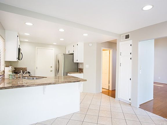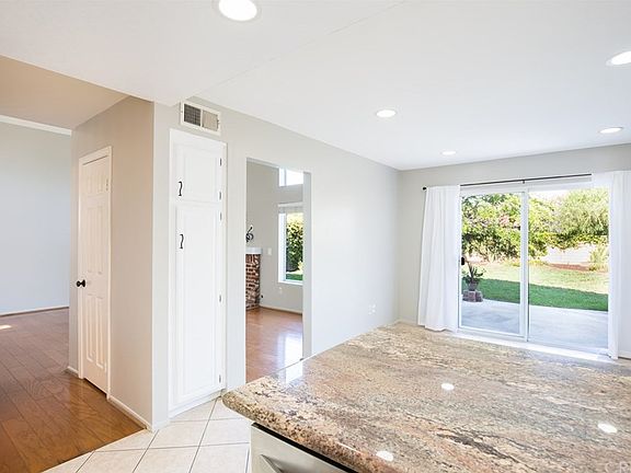 Saugus Starter Home with Pool-Sized Yard. Presenting a wonderful 3 bedroom, 3 bathroom home right across the street from a community park with children's playground. Upon entering the home your eyes will be drawn to the beautiful brick fireplace with raised hearth and mantel. Use this area as a large living room or utilize part of it as a dining area. The remodeled kitchen has white cabinets, stainless steel appliances, granite counters, breakfast bar, and recessed lighting. The kitchen opens up to a multi-purpose room...family room or expanded eating area. There's also a powder room on the main floor. Upstairs you'll find two guest rooms with chair railing, a guest bathroom, and the master suite. Throughout the house you'll find floor molding, ceiling fans, recessed lighting, new carpet, new paint, and beautiful wood flooring. The large backyard is great as it is for entertaining and family fun, or go ahead and have a pool put in...you deserve it! Shops, schools, restaurants, and a grocery store are all close by. Welcome to your new home!!