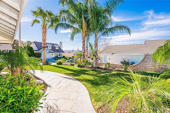 Expanded single story with true RV & tremendous views of Plum Canyon! Gorgeous, remodeled home that has been enlarged to be 3 bedrooms + a spacious office! Lovingly updated over the years, the home features tile & wood floors, remodeled kitchen with stainless appliances, copper plumbing and newer windows - very sharp. Outside has stamped concrete walkway, fresh paint, nice palms, 35' deep RV and a deck that offers views for miles. Newer A/C, BBQ cook station, storage shed and above-ground spa stay. 2 car garage with cabinets. No HOA & no Mello Roos.