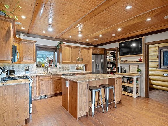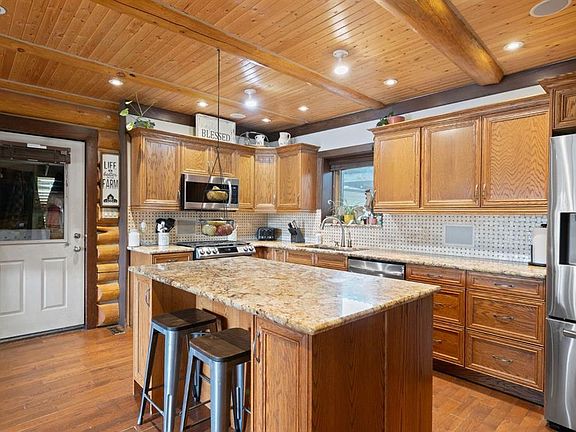 Situated on 20 private acres of Agricultural land backing directly onto 320 acres of lease Crown land, this property offers a rare blend of natural beauty, space, and functionality. Surrounded by mature trees and wide-open clearings, the land is a mix of forested areas and usable open space. A gravel driveway winds through the lot, providing access to the main home, outbuildings, and multiple utility-serviced locations, making it perfect for RV guests or expansion. With no neighbors to the West, the setting offers uninterrupted access to nature and exceptional privacy. The property includes a horse shelter, small animal barn, chicken coop, multiple storage sheds (including one with a dog run), and a 36' x 20' heated shop with an upper mezzanine—ideal for projects, storage, or workspace. The log home features expansive decking, including a large south-facing deck with a built-in hot tub, pergola, TV screen, and projector. Inside, you'll find a spacious boot room, granite kitchen with gas stove, center island, stainless steel appliances, and an open dining/living area. A main-floor bedroom (or potential family room) offers flexibility. Upstairs includes the primary bedroom, TV room, and full ensuite, while the lower level adds two more bedrooms, a large bathroom, 9-ft ceilings, and in-floor heat. Located just 20 minutes from Cochrane, this one-of-a-kind acreage is ready for those seeking space, privacy, and direct access to the outdoors.