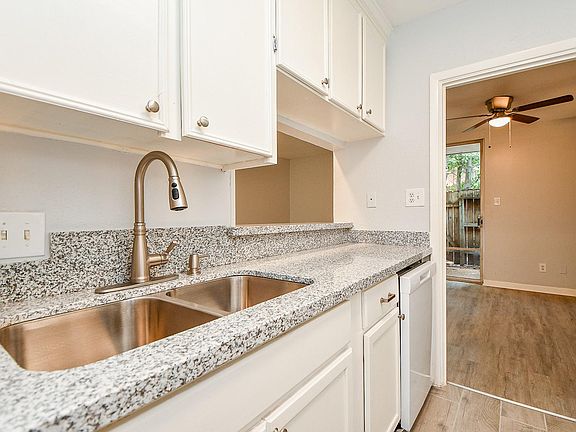 Laminate wood flooringGranite countertopsNatural lightStainless steel double sinkPrivate fenced in patio