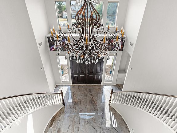 As you approach the property, you'll be greeted by a grand circular drive with a water fountain feature, leading to the impressive entry. Inside, you'll be captivated by the winding staircase and framed foyer, adorned with Italian porcelain flooring and a Swarovski crystal chandelier that exudes luxury. The open-concept design creates a welcoming atmosphere, perfect for both family living and entertaining.