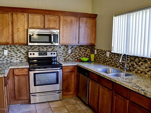 Move in to this gorgeously remodeled (Sept) popular split bedroom greatroom floorplan. No detail has been overlooked. Updates include Fresh Interior Paint, Tile, Carpet, Kitchen & Bath Birch Knobbed CABINETS, New Sinks, Faucets & Towel Bars, GRANITE Kitchen & Bath Counters, Tiled Backsplash, STAINLESS Smooth Top Range, Micro, Dishwasher, new Ceiling Fans, Light Fixtures & Stainless Door Hardware, new Patio Roof. Water Heater & Garage Keypad installed 2012. AC serviced April 2014. Low maintenance landscaping on drip/timer with brick bordered grassy back & desert frontyard. Kids walk through park, three doors down, to bus stop(Highland JH/HS). Close to Banner Hospital, MD Anderson Cancer Center, freeways, schools, run/bike paths, shopping; walk to nearly everything. Window screens in garage.
