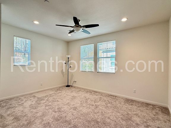 Introducing this stunning 3-story townhouse located in Spring Valley, 2822 Elderflower Street. Located in Sweetwater Vistas Community in the Aurora Development this modern townhome features 3 bedrooms, 3.5 bathrooms, perfect for those seeking a spacious and comfortable living space. The kitchen is equipped with an ample pantry closet, stainless steel appliances, sparkling granite counters, and white cabinetry offering a neutral and calming color scheme. The living room boasts recessed lighting and a ceiling fan, while the dining room opens up to a balcony, perfect for enjoying the fresh air. Each bedroom comes complete with recessed lighting and a ceiling fan with remote control for optimal comfort. There are two primary bedrooms on the third floor, each with their own walk-in closet and en suite bathroom, with one featuring a double vanity, linen cabinet and spacious walk-in shower. The other offers a tub/shower combination. The washer/dryer is located right outside the 2 upper primary bedrooms making laundry a breeze. The 3rd bedroom is on the second floor and main living level and is perfect for a office/den with a full bathroom with a walk-in shower in the hall. With central air-conditioning, solar panels and an EV charger in the attached 2-car garage this home is not only stylish but also energy efficient. The floors and walls have been upgraded with with extra sound insulation to help reduce noise. The home has built-in wi-fi extensions on each floor for better connectivity. The community amenities include a refreshing pool, BBQ area, and playground for residents to enjoy. Don't miss out on this beauty where luxury meets convenience in the heart of Spring Valley. Sorry, no pets or co-signers allowed.