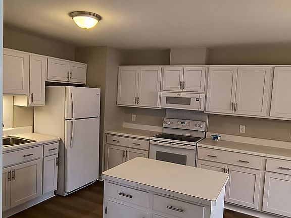 The large eat-in kitchen has been thoroughly updated and includes modern, white, shaker style cabinets with upgraded hardware, plus a kitchen island for even more counter space and storage- great for everyday living and perfect for entertaining! The kitchen also features an upgraded sink faucet plus all major appliances, including a refrigerator/freezer, electric range, dishwasher, disposal, and microwave.