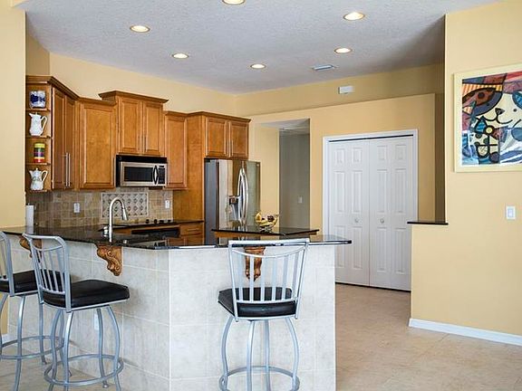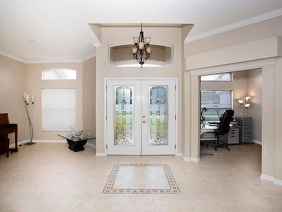 Beautiful from the moment you drive up to the flowing rock waterfall and caged pool. This home has 4 spacious bd and 3 ba Formal L R, D R and den. The kitchen has 42" upper cabinets, Granite counter tops, a Wine rack and Wine refrigerator. Smooth counter top cook top, with stainless steel drop in oven. All very bright and open. The eating nook is surrounded by glass overlooking the spacious lanai and rock waterfall. Extended decking. The family rm has soaring ceiling and 4 signature glass windows. New carpeting and a full length bkcase area with plenty of open space for a TV. A pocket door leads to a second master bedroom with dual access to the bath. There is a 16x17 media room with windows and sliders with a peaceful view of the pool and spacious back yard. An inside utility room with a laundry tub and cabinets above the w/d. There is a 3 car garage with 2 separate garage door openers, cabinets for storage and a back door for ez access to the back yard. The home has recently been painted inside and out. Upgraded landscaping and reclaimed water make the lawn look lovely year round. The community includes an 11 acre park with upgrades, a tennis and basketball court and soccer field. The community pool with bathrooms and an open lanai available to you to use and enjoy. The is a mile walk around Lake Michala with benches and a gazebo to enjoy nature. A rated schools close to all major shopping but far enough away to be very quiet. Come and see you will be very happy you did! MEMORIAL DAY SPECIALS! CALL !!!