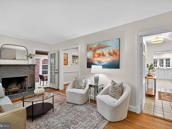 This charming brick Colonial offers an ideal entry point into one of D.C.’s most sought-after neighborhoods. Thoughtfully maintained over the years, the home balances timeless character with meaningful updates and opportunities for future expansion. Step inside to a welcoming living room with a wood-burning fireplace, a formal dining room, and an expansive first-floor addition featuring a large open-concept kitchen and family room. The entryway provides a coat closet, additional hallway storage, and a convenient half bath. Gleaming hardwood floors flow throughout both the main and upper levels, creating warmth and continuity. A recently enclosed porch serves as a true highlight—designed for year-round enjoyment with sliding windows that open for a screened-in feel, plus heated flooring and a ceiling heat fan. Most windows have been replaced with quality Andersen Renewal units, and the owners added a decorative portico and a brick bay flower bed, enhancing the home’s curb appeal. Upstairs are two spacious bedrooms, including a primary bedroom that spans the width of the home with three closets and charming street views. The second bedroom enjoys southern and eastern exposures overlooking the backyard, while a vintage hall bath completes the level. The lower level offers excellent potential for a guest suite, playroom, or hobby space. It currently includes cabinetry and the former stove from the original kitchen, along with a quarter bath, laundry area, and boiler for radiator heat. Outdoors, the level backyard is perfect for entertaining, gardening, or pets, featuring a large storage shed and southern exposure ideal for play and planting. Across the alley, residents enjoy access to a newly renovated practice field. Preliminary architectural findings suggest the potential to extend the second floor over the rear addition to create an additional bedroom and bathroom (buyers to verify). Ideally located just steps from Lafayette Elementary School and Park, 2822 Rittenhouse Street NW offers classic Chevy Chase charm, modern updates, and future potential—all on a picturesque block at an exceptional value.
