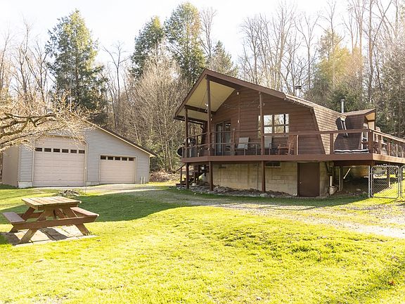 Welcome to 2822 Rockland Drive! This beautiful 2 bed, 2 bath seasonal or year round home is the perfect secluded getaway on 4.44 acres. Prime location bordering Allegheny National Forest located on a private road. Supplemental heat consists of a wood stove in the basement. You will not lack for storage with the oversized 40X30 heated 2 stall garage with RV garage door and workshop. Partially finished walkout basement could provide extra room if desired! Property offers a wrap around deck great for entertaining and small fenced in portion of yard for pets or children. Must see to appreciate!!