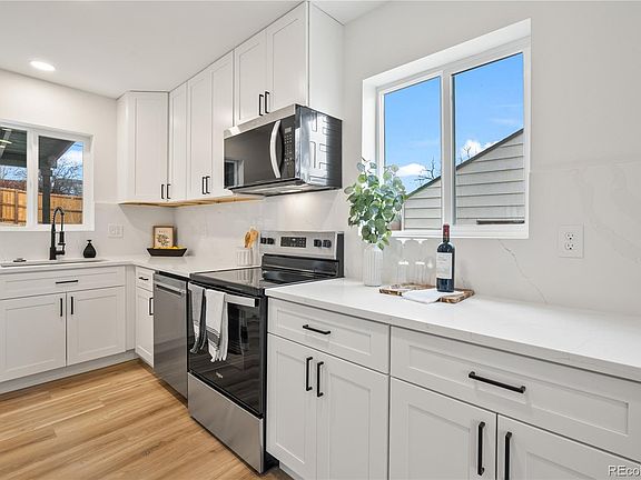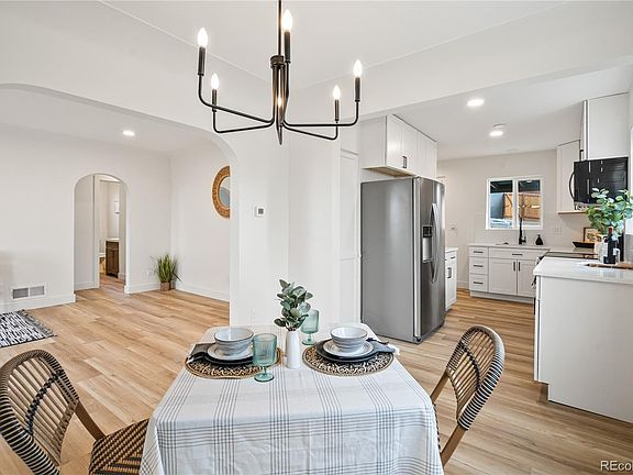 Welcome to the best deal in West Denver! This fully remodeled home sits on an elevated lot with stunning city skyline and Rocky Mountain views — a must see. Move-in ready and truly turnkey, it feels like a brand-new home in a well-established neighborhood. Inside, enjoy seamless new flooring, fresh paint, modern LED lighting, and a spacious open-concept layout perfect for entertaining. The true primary suite offers a large walk-in closet and a luxurious spa-like bathroom with custom floor-to-ceiling tile, while the two additional bathrooms are fully renovated with high-end designer finishes. No stone has been left unturned — new furnace and AC, updated plumbing and electrical, energy-efficient windows, finished laundry area, a multipurpose office/non-conforming 4th bedroom, and plenty of storage. The block has transformed in the last year with multiple renovated homes and neighbors upgrading lawns and exteriors, creating a welcoming, refreshed community. Priced like a 3-bedroom but offering so much more value. Plus, enjoy a $5,000 buyer concession to use however you'd like. Don’t miss this rare opportunity to secure a high-end home from motivated sellers — act now and take advantage of this deal before the market heats back up!"