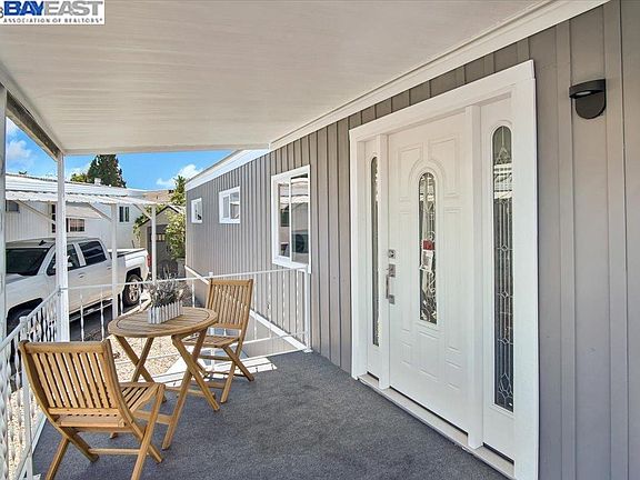 Beautiful remodeled home in the desired Eden Roc MH park. Low space rent $688. New floors, New copper plumbing, New roof, New countertops, New paint inside and out, New dual-pane windows. 2 bedrooms; 2 full bath; Spacious, Sunny living room with big windows; Kitchen with dining area; Marble-like countertops in kitchen and bathroom; Clean, white, wood cabinets in Kitchen; Enclosed Newly built Bonus room; Backyard for entertainment or gardening; Parking for 2 cars with plenty of guest parking across the street; Located quietly in the back away from the noise of Hesperian. Park has a spacious club house for fun activities and two swimming pools to cool off during the summer! Plus a playground for the children, a pet park, billiards game room, sauna, fitness center and monthly community activities. Close to Union Landing shopping, Costco, St. Rose Hospital, Mt Eden Park, Alden E Oliver Park, Chabot College, Mt Eden High School, 880 freeway, San Mateo Bridge, and public transportation. All Ages mobile home park. Park residency approval required.