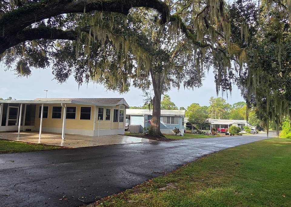 Looking for a peaceful and quite setting on the outer circle of the desired West 3 side of the community? Well here she is!! Enjoy the wooded view and the beautiful trees that dances in the breeze and listen to the magical sounds of nature. Get a glimpse of untouched Florida right outside of your front door! Sellers put a BRAND NEW ROOF over the ENTIRE HOME in 2025! The home has an 11x20 carport, and an 11x23 screen room with a tri-door for added convenience. Inside there is a one level Florida room which has upgraded windows and an area that has been set up for your out of town guests. Area is under heat and air increasing the livable square footage. Kitchen is spacious, complete with a dishwasher which is an added bonus. Master is large with double closets and tons of storage. Laundry is indoors in its own separate room. Enjoy the multitude of activities and amenities that the resort has to offer. Bring your boat, fishing poles and floats because you will have Harris Chain of Lakes access via Helena Run. Resort also has a private marina. The community is within an hours drive to Disney, many springs and close to many beaches. Whether you are looking for a year around home or seasonal Holiday RV Village is an amazing place to be. Call for further details. But make it soon because buyers are looking and sales will be picking up!