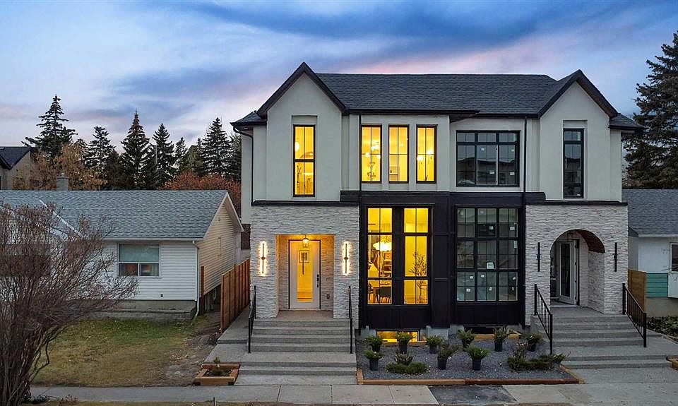 MOVE-IN READY | HIGH-END FINISHES | SITTING ON A 50x126 LOT IN BANFF TRAIL! Don’t miss your chance to own this brand-new, luxury semi-detached infill in the highly sought-after community of Banff Trail! Perfectly situated on an oversized 50x126 lot, this home combines modern elegance with exceptional craftsmanship and premium finishes throughout. Spanning over 3,068 sq ft of meticulously designed living space, this residence features 4 bedrooms, 4.5 bathrooms, and upscale details around every corner. The main floor welcomes you with a bright, open layout highlighted by soaring 12-ft front windows, a recessed ceiling, and a glass-enclosed office with an open-to-below design that floods the home with natural light. The chef’s kitchen is a true showpiece, featuring ceiling-height custom cabinetry, quartz countertops, a designer tile backsplash, and a large central island with bar seating — perfect for entertaining. The living room centers around a sleek gas fireplace with full-height tile surround and elegant arched niches for added architectural charm. Dual sliding doors open to the rear deck and backyard, creating an effortless indoor-outdoor flow. Upstairs, the primary retreat offers a luxurious escape with a recessed ceiling, two walk-in closets, and a spa-inspired ensuite complete with heated tile floors, dual sinks, quartz counters, a freestanding soaker tub, and a fully tiled glass shower. Two additional bedrooms, each with private ensuites, and a laundry room complete this level. The fully finished basement with separate side entrance is designed for versatility — featuring a spacious rec room with built-in entertainment center, a wet bar, home gym, and a large bedroom with walk-in closet and full bath — ideal for guests or extended family. Located just steps from West Confederation Park, U of C, McMahon Stadium, and top-rated schools, this home delivers the perfect balance of luxury, lifestyle, and inner-city convenience. Quick access to Crowchild Trail and 16th Ave ensures easy commuting anywhere in the city. This Banff Trail gem is move-in ready — offering premium finishes, modern design, and an unbeatable location.