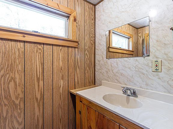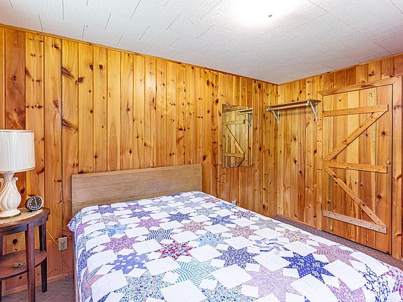 - Description: Knotty pine walls, baseboard heat, carpet, tiled ceiling