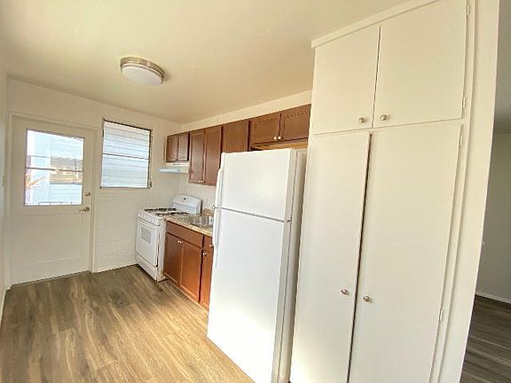 The kitchen comes complete with a refrigerator and range. There is a washer in the back for your convenience.