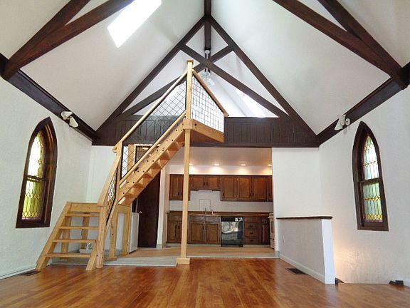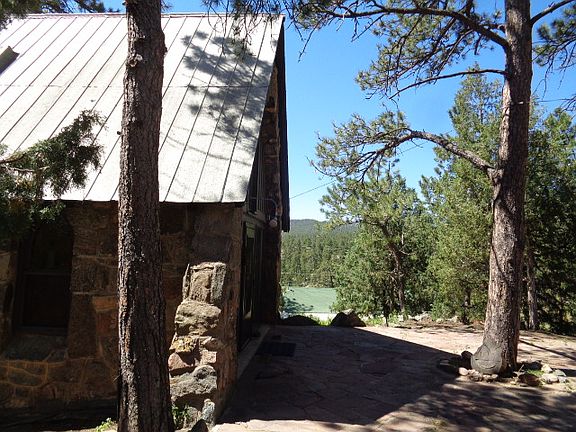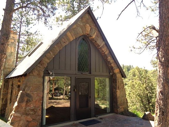 THE CHAPEL, part of a former summer camp in the heart of Evergreen! Soaring beamed ceiling, original stained glass, wood flooring, and the solid stone walls are nearly a foot thick! 1,008 square feet including the finished walkout basement, plus a usable loft for a desk or guest.The primary bedroom with a full bath is downstairs and an additional half bath is on the main level. New steel roof, skylights, washer & dryer, and more! Outdoors: Flagstone patio, Two parking spaces, and large natural vegetation yard with mature trees. Awesome central location is an easy walk to main street restaurants, live entertainment, and shopping. Hiking/Biking and paddling & ice skating on Evergreen Lake are nearby along with services and commuting routes. So Move up to EVERGREEN and start enjoying the Colorado sunshine, fresh air, wildlife, and abundant trees, where every day is a Rocky Mountain staycation! Prefer no pets, 11 month renewable lease, available for occupancy late November. Shephard Realty does not accept Portable Tenant Screening Reports and per CO HB 23-1099 is exempt by not accepting more than one Application Fee at a time for this dwelling unit and conforming to the requirements of CO HB 23 -109.