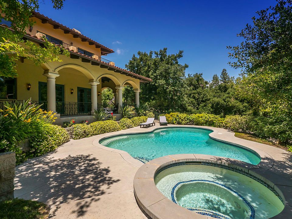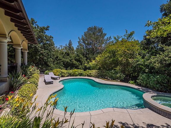 This gorgeous secluded and privately gated Estate includes nearly 1 ½ acres of tree lined property. The estate offers a lovely courtyard where you instantly feel a perfect balance of harmony and elegance. The entire home was exquisitely updated in 2011, offering open space living in the family room with a custom gourmet kitchen, maple flooring, exquisite stone work and more. Just off of the family room walk out onto the wrap around porch and enjoy the relaxing pool & Jacuzzi with views of the majestic oak trees. Private dining room & lovely seating & bar area with soaring ceilings. The Master Bath includes ample use of natural stone, high end fixtures, his & hers sinks and a heated stone floor. The Master Suite includes surround sound, a stone fireplace and private balcony with tree line views. A special feature of this home is the very large Guest Wing with kitchenette and full Bath. The possibilities for this large space are endless. Imagine a home office, home theater, gym, game room, art or music studio or an extended family living space with its own privacy – or any combination of these is possible. In addition to this stunning home other features include: amazing privacy, recording studio, lighted sports court, 240 sq ft storage barn or tack room. 100% owned solar system, Whole house generator back up system, multi zone air conditioning and surround sound. The property has ample room for Horses in this livestock friendly neighborhood. Conveniently located close to Cheseboro State Park Trails, just minutes from Malibu beaches & more.