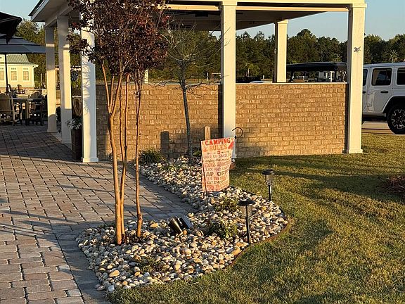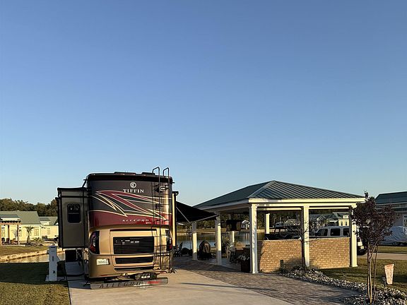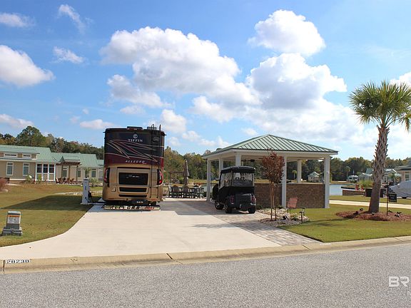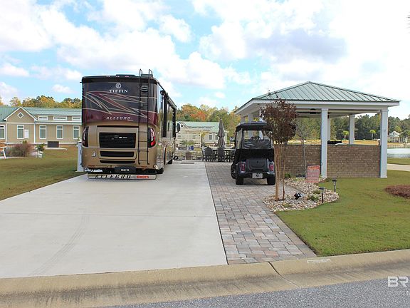Welcome to Lake Osprey RV Resort Country Club, lot 121! Discover this incredible, one-of-a-kind, turnkey lakefront RV lot located in one of the finest resorts on the Alabama Gulf Coast. This stunning, meticulously designed property features three tiered outdoor-living patios, offering exceptional spaces for relaxing, entertaining, and enjoying peaceful waterfront views.This lot includes an inviting brick fire pit on the waterfront level, outdoor party seating on the second level all beautifully backlit with solar lighting. The lot level spacious pavilion is equipped with a portable gas fire pit for warmth when necessary, a built-in flat-top grill, two gas burners, a hot-water sink, and generous counter space, ideal for outdoor cooking and gatherings. Roll down shades, ceiling fans, mounted TV and a speaker system add to the perfect entertainment environment. All outdoor furniture conveys with the sale, making it completely move-in ready. An extra-long RV pad with full hookups accommodates the largest RVs. Live here full-time, use it as a vacation getaway, or rent it for income; the flexibility is unmatched. A house or coach home can also be built on-site in the future if desired. Owners enjoy all the premium services and amenities Lake Osprey offers, including clubhouse access, pool, fitness center, pickleball courts and more. HOA dues are $320/month and include water, sewer, trash pickup, cable, internet, and lawncare. The resort location is next to Soldier's Creek Golf Course, and just minutes to the white sand gulf coast beaches, entertainment, restaurants, and shopping. This lot is priced to sell. Don’t miss this rare lakefront opportunity! Buyer to verify all information during due diligence.