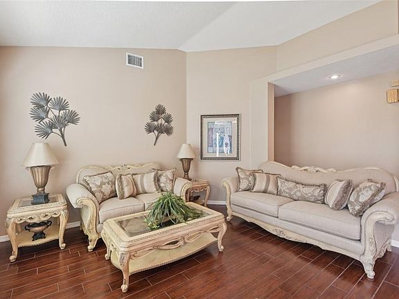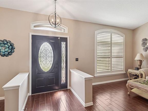 Welcome home! This beautiful spacious 4-bedroom, 3-bathroom home with a 2-car garage offers 2,428 square feet of well-designed living space in a quiet neighborhood with lush, standout curb appeal. As you arrive, the elegant glass door welcomes you into a bright formal living and dining room, perfect for both everyday living and entertaining. Inside, you'll find beautiful wood-look tile plank flooring throughout, stylish, durable, and easy to maintain. The huge, bright kitchen is a dream, complete with plenty of counter space and a gas stove for serious cooking. Just off the kitchen, you'll find a dinette area and a cozy family room, creating the perfect flow for daily life. The primary suite includes an updated bathroom with glass shower doors, dual sinks, and a walk-in closet. All bedrooms are generously sized, and one features custom built-in California-style shelving—ideal for a home office or creative space. The 4th bedroom functions as a bonus in-law suite, fully updated in 2023, complete with its own private en-suite bathroom featuring modern finishes. Step outside to your enclosed patio, perfect for relaxing or entertaining—while staying protected from Florida’s infamous mosquitoes! The backyard features lush, upgraded landscaping, a French drain, and a sprinkler system, all within a fully enclosed vinyl fence for added privacy and low-maintenance enjoyment. Smart features include a smart home thermostat, wired security cameras, newer windows and sliding glass doors, and custom shutters (2021). The newer AC unit (2017) keeps the home energy-efficient and comfortable. You're just a short walk to the community clubhouse, pool, and fitness center, and minutes from top-rated schools, USF, Wiregrass Mall, Tampa Premium Outlets, Orlando Health hospitals, and countless dining and entertainment options. With quick access to I-75, I-275, and Bruce B. Downs Blvd, commuting to Tampa, Zephyrhills, and Wesley Chapel is a breeze. Bonus: being close to a fire station could help reduce your home insurance costs. Don’t miss your chance to own this beautifully updated and well-maintained home that offers the perfect blend of space, style, and convenience in one of Wesley Chapel’s most desirable communities—schedule your private showing today!
