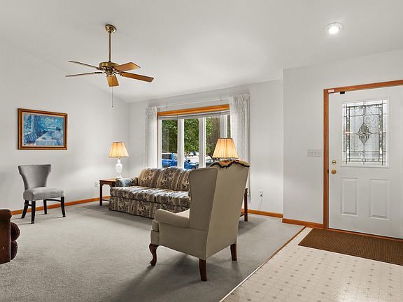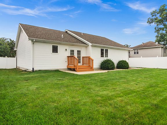 Welcome to this immaculate ranch-style home, where meticulous care and attention to detail are evident throughout. This home offers the convenience of main-level living, featuring an inviting eat-in kitchen with a stylish island, perfect for casual dining and entertaining. A French door leads to a cozy 4x6 porch, seamlessly connecting to a spacious patio, ideal for outdoor gatherings and relaxation.The living room is a bright and airy space, highlighted by cathedral ceilings and a charming bay window that floods the room with natural light. You'll appreciate the generous storage throughout the home, including large closets that cater to all your organizational needs.The primary bedroom is a true retreat, offering a walk-in closet for added convenience. The neatly painted, partially finished basement provides additional space, a finished main level laundry/mud room room for ultimate convenience. The entire home feels just like new with key updates such as a new HVAC system (2019), hot water heater (2019), countertops (2019), roof (2016), kitchen French door (2016), and new custom windows (2016).Situated on a fenced-in lot, this home also includes a 2-car garage and easy access to nearby walking trails and a park, perfect for outdoor enthusiasts. With all these features combined, this home is the perfect blend of comfort, style, and location. Don't miss out on this beautifully maintained gem!