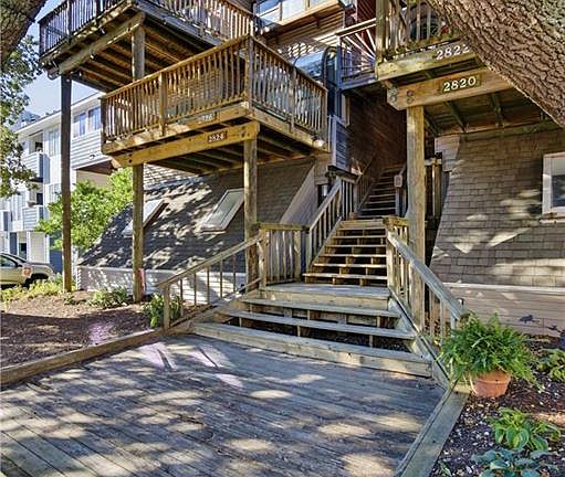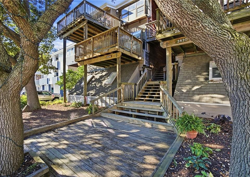 Welcome to The Landings IV, a beautifully updated 3-bedroom, 2-bath condo affectionately called “The Treehouse,” located on the bay side of Shore Drive. Renovated in 2018 and recently freshly updated with new paint, carpet, light fixtures, and a brand-new stove. The open living/dining area connects to a two-sided galley kitchen featuring granite counters, tile backsplash, and stainless-steel appliances, plus a stackable washer/dryer. The spacious primary suite offers a walk-in closet and updated bath with ceramic tile. Easy to maintain vinyl plank flooring runs throughout, with new carpet in the front two bedrooms. Enjoy both front and rear decks, perfect for relaxing after a walk to the beach. The ground-level garage includes two assigned parking spaces, a storage room, and nearby outdoor shower. Just minutes from First Landing State Park, this move-in-ready coastal retreat has it all.