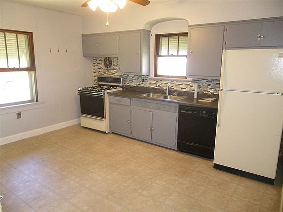 This adorable 2BR/1 bath ranch with full basement sets on a corner lot. New sidewalks, a fenced in back yard and 2 car detached garage. Great neighborhood and close to shopping, restaurants and the post office. The interior is very neat and clean boasting fresh paint, nice flooring. The washer and dryer hook ups are now in the kitchen. Oven Refrigerator dishwasher replaced 2018.The basement can provide lots of extra storage. 2019 - New roof, new windows, new siding. Half of the basement has drop ceiling with a dividing wall and door to other half. Needs updated.8