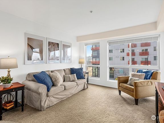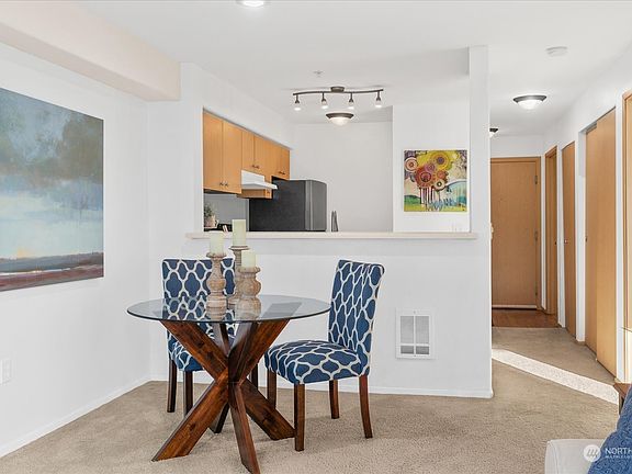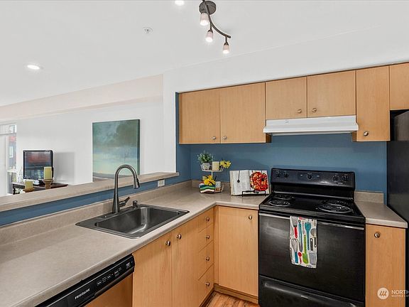 City living with a view of Puget Sound from your living room! Bright, light, and gorgeous 1 BR + office, 1 BA condo in downtown Nautica, blocks to the waterfront, shopping, restaurants, and all the amenities Everett offers. Well maintained unit includes brand new dishwasher, newer fridge and hot water heater. In unit laundry, elevator access to secure parking, fitness center, and rooftop deck with unobstructed views of the waterfront, Possession Sound, and the Olympic mountains. Steps to food Co-op for groceries & deli, plus restaurant next door. Minutes from Navy base, Boeing, Hewitt Ave Historic District, I-5, and more. Storage locker near unit, W/S/G included in HOA with low dues, well maintained complex with no rental cap. A must see!