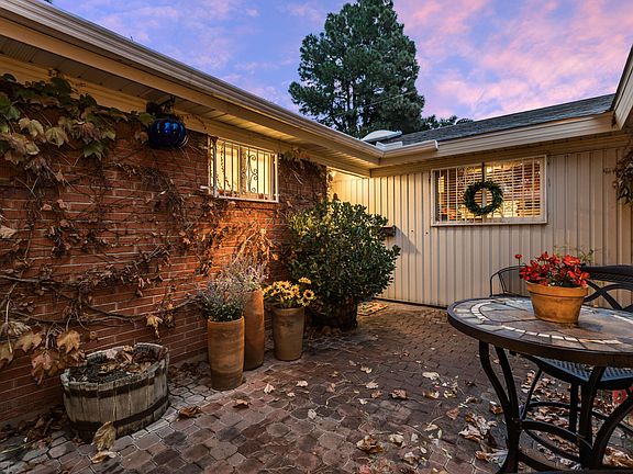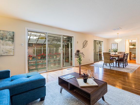 This home has been lovingly maintained and updated by the same family for 64 years! Courtyard entry. 2 living and dining areas. 4 bedrooms, 2 with en-suite bathrooms and 1 of these is by itself on one side of the house making a private guest space. Bright living and dining rooms with original 3/4'' hardwood floors. Cozy den with wet bar, fireplace & access to powder bath. Efficient kitchen design with long counter space, breakfast nook, double ovens, skylight, large format tile and solid surface granite composite counters. Updates primary bath with replaced vanity with stone countertop and large walk in shower. Grow plants all year in the greenhouse. New roof in Oct 2025, fresh paint throughout. New carpet. Spring will surprise you with the many beautiful bulbs that will blooms.