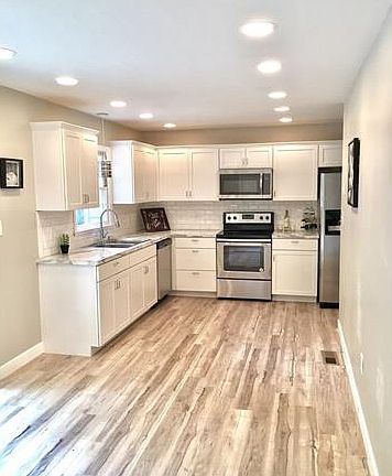 BACK ON THE MARKET- NO FAULT OF SELLER!!!!This charming home has been renovated beautifully. The home sits on a park like lot with wonderful tree cover, it has been freshly painted in a charming blue, you will find a welcoming front porch and new roof. Inside the living space is a large area that is fully of natural light. The kitchen is a dream come true, stainless steel appliances, white soft close cabinets with endless space and recessed lights. If you want to have an eat-in area or an island there is plenty of room.The natural light in the kitchen is highlighted by the sliding glass door that leads to a huge deck to accommodate all your outside entertaining. Off the kitchen is a large mud room with washer/dryer hook ups, cabinets, and a separate exterior door. The hall bath has beautiful tile work and a large vanity. The master bedroom is a great size and has an elegant master bath. The other two bedroom are large and have nice closets. Good schools and close to everything this home has it all!!!