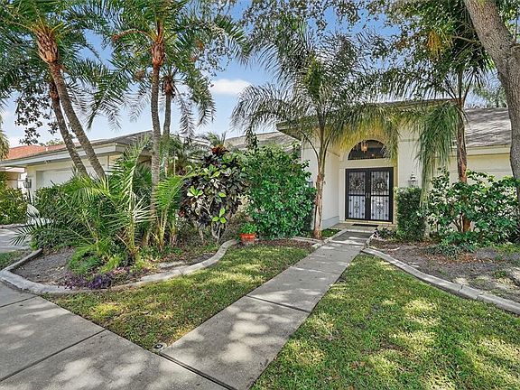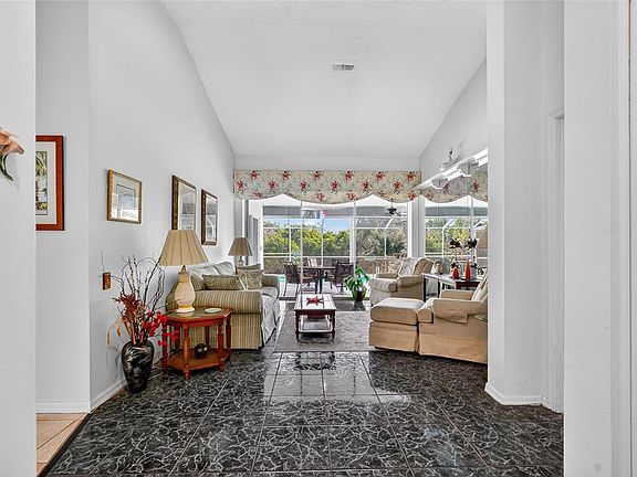 Welcome to this four-bedroom, three-bathroom pool home in the heart of Holiday in the Amblewood community of Gulf Trace, perfectly positioned on a tree-lined conservation lot offering both privacy and tranquility. Once the model home for the community, this residence showcases thoughtful design, spacious living, and just under 2,500 square feet of beautifully maintained space. Step inside through the foyer entrance with a convenient coat closet and be greeted by high ceilings and a light, bright interior filled with natural light from the large sliding glass doors overlooking the pool area. Enjoy entertaining in the formal dining area, while the galley kitchen - offering plenty of cabinet storage - opens to the family room and breakfast nook. The family room features a cozy wood-burning fireplace, creating a warm and inviting space for gatherings. The split floor plan provides both comfort and privacy, with a spacious primary suite featuring an en-suite bathroom complete with a dual-sink vanity, step-in glass-enclosed shower, and private water closet. A dedicated office is located just before the garage, perfect for working from home, and the laundry room includes additional storage for convenience. One of the back bedrooms includes an attached private bathroom, making it ideal for guests or multi-generational living. The additional bedrooms are nicely sized and share access to a third full bath. Step outside to your private screened-in pool area, ideal for year-round enjoyment. The outdoor space includes a covered area for al fresco dining, a wet bar, and a fenced backyard backing up to a peaceful conservation view - the perfect setting to relax or entertain guests. Located close to shopping centers, dining options, and just a short drive to the Gulf beaches, this beautiful Holiday home offers the best of Florida living - space, privacy, and convenience in one exceptional package. Schedule your private showing today!