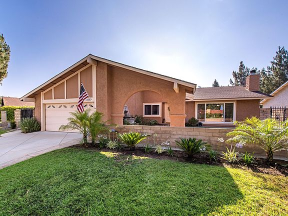 Beautiful single story Gated R.V. home. 4 Bedrooms and 2 Baths. Gourmet kitchen with stainless steel appliances including refrigerator, wine fridge, dishwasher, range, oven and microwave. Gorgeous flooring. Dual pane windows, Newer A/C-Heat. Recessed lighting. Fireplace in family room. Lovely master suite and en suite. In door laundry. Formal dining room. Out back this home has a entertainers patio area and backs up to Simi Hills Neighborhood Park. Side gated R.V. (gate is approx 9 feet wide)..medal shed and a Solar system. A true must see..