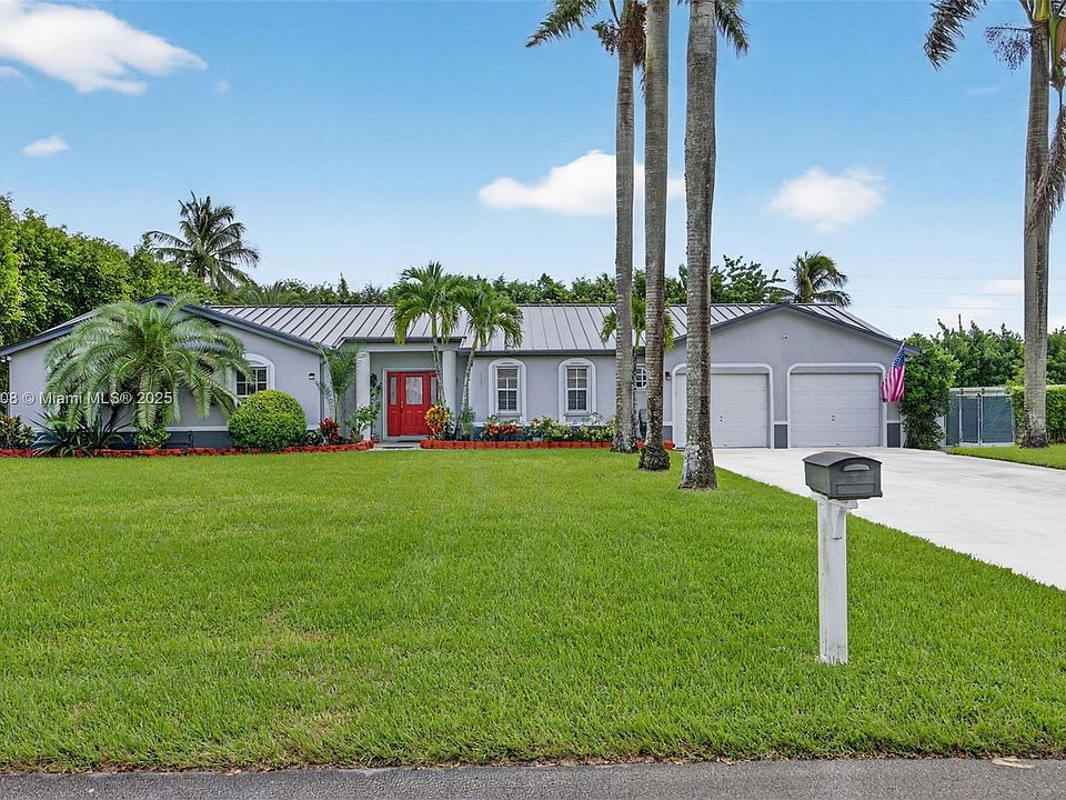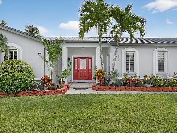 Discover this spacious 4/3 pool home nestled in a cul-de-sac. Featuring 2 large master suites, soaring ceilings, and easy-care ceramic tile flooring throughout the living areas. The property is designed for comfort. The kitchen is equipped with new stainless steel appliances and features attractive white cabinetry. Stay comfortable with ceiling fans and a recently updated AC unit, or step outside to unwind at the custom-built bar or take a swim in the heated pool. This move-in-ready residence boasts numerous upgrades, including a new metal roof, resurfaced pool with jacuzzi, and an outdoor generator power box. Fenced backyard with boat space! Ideally located near shopping, dining, and major roads, this meticulously maintained home is available for purchase today.