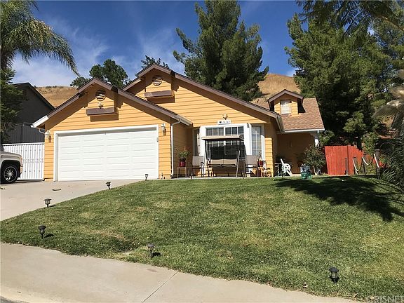 GREAT HOME LOCATED IN CASTAIC!!! Home has an open concept floor plan and is ready for its new family to move in!! The home consists of 3 bedrooms, 2 baths, spacious living room with natural light and travertine floors, family room and dining room. Bedrooms have carpet throughout and a fireplace. The kitchen has abundant cabinet space, tile counters, stainless steel appliances in the kitchen, bathroom and hallway, Recessed lighting in kitchen with crown molding and a bay window. Master suite with large mirrored wardrobes and closet organizer. Homes has central air & heat. Outdoor covered patio with cement flooring and private backyard with a mountain view! Home has a wide driveway with RV access to the backyard. No HOA and No Mello-Roos. Close to the lake, shopping and schools.