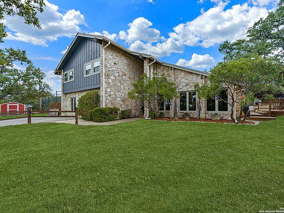 New Paint, New Price! Fresh interior house paint for a better than new home! Easy access to San Antonio and minutes from Boerne and near Fredericksburg, Comfort & Kerrville. One of a kind, home in the heart of Fair Oaks Ranch sitting on 5 acres! This homestead is perfect escape from the hustle and bustle of the city. Ideal for a weekend retreat, small family ranch or commuter estate. Fantastic long range views & stunning mature trees. Recently remodeled, this home has all of the charm of the Texas Hill Country and is the ideal balance between timeless county and new chic. In the center of the home, find a custom Chefs Kitchen, new oversized island, grand cabinetry and generous counter space. A bonus flex living room is located right off of the entry, perfect for multi generational living. Beyond the glass, the Hill Country Dream! Complete with barn, chicken coup, 2 sheds, detached garage/workspace, oversized entertainers patio, basketball court, tree house, batting cage, pool and so much more! This homestead has it all. Too many upgrades to mention: new fencing, paved driveway, resurfaced/retiled pool, additional pantry, expanded laundry area, added partition in entry, upgraded floors, added downstairs broom closet, upgraded master bathroom, upgraded closets, deck and gate. The list goes on. An ideal spot for easy country living. Just The Sweet Boerne you've been looking for! A rare opportunity. Call us today to arrange a showing.
