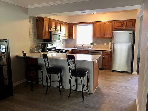 Step into an inviting open floor plan featuring fresh flooring on the main level and a beautifully updated kitchen with sleek quartz countertops, perfect for everyday living and entertaining. The main floor also includes a generous living room, dining area, full bath, laundry closet, and a deck overlooking serene green space with a hidden stream teeming with wildlife year-round.