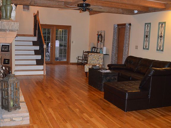 Home features a master suite, a large loft area with tons of storage (currently used as a bedroom), and a large master bath along with 2 walk in closets and laundry area up stairs. On the main level is a large living room, large kitchen and dining room, a sunroom, and a spacious half bath. The basement has two additional rooms both with walk in closets, a full bath, and a two car garage with workshop area and laundry hook ups. The home sits on 7 acres (partially cleared/partially wooded) and also has a pond in the back. This home is custom throughout with beautiful wooden beams and custom wood work setting it apart from others. Tons of built ins and storage space. A must see!!!