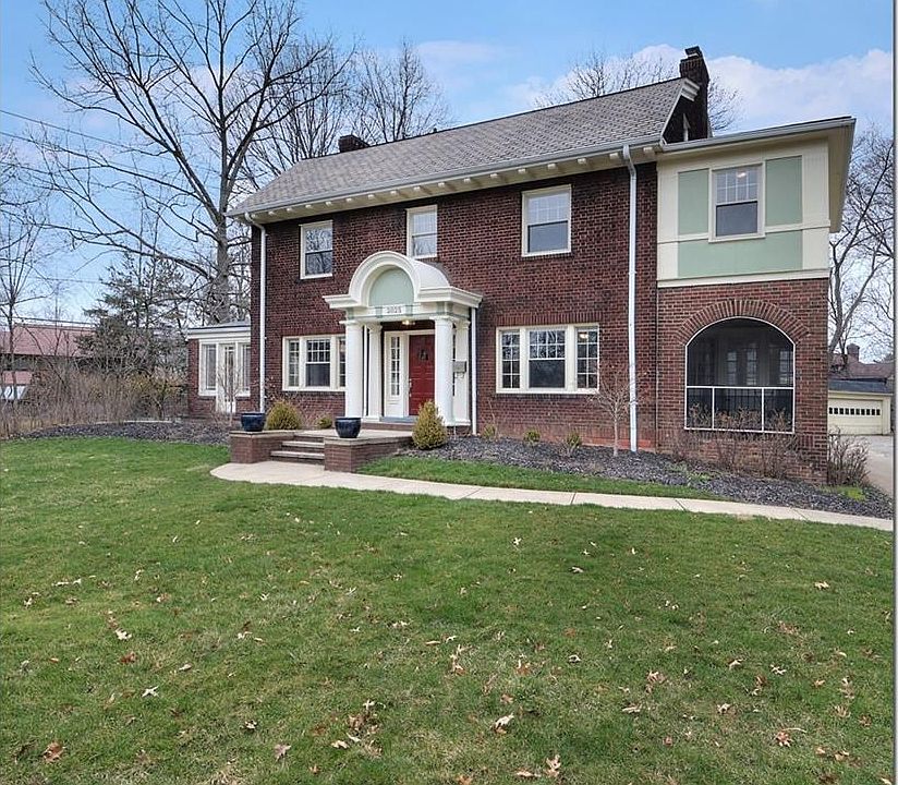 Expansive rooms and graceful details -- high ceilings, crown moldings, hardwood floors, spacious rooms in a circular flow -- make this brick center-hall colonial a classic beauty. Crisp décor adds to the calm and harmony of the classic architecture. The wide entry foyer and hallway set the tone for the spaciousness and breadth of this home. Beyond, the expansive living room, featuring a striking tiled fireplace and built-in cabinets, opens through to the slate-tiled family room. The entertaining-sized dining room flows into the screened-in porch and kitchen. The up-to-date kitchen boasts granite countertops, lots of cabinetry, stainless appliances and a terrific breakfast/sitting room. A half-bath is off the main hallway. On the second floor, the master suite has a walk-in closet, full en-suite bath, and its own sitting room. Also on this floor are two more bedrooms, a full bath and a laundry room (a convenient modern update). On the third floor, there are two bedrooms with walk-in closets, a full bath and lots of storage space. The walk-out lower level opens to a family space, mechanicals and storage. This house, with its delightful details, gracious lines, natural light and green views, would be a joy to live and entertain in. Close to the conveniences of Shaker Square, with its Saturday Farmers Market and restaurants, the rapid transit is at your door steps, and it's a short drive to University Circle and downtown.