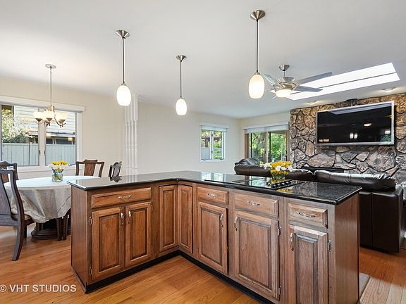 Location! Location! Move-in ready sprawling, Ranch (a rare commodity in Northbrook) in desirable District 27! A fabulous 4 Bedroom/2.1 Bath home in awesome residential neighborhood. Short walk to Sports Complex -Enjoy pool post-covid. So many parks galore and so many activities: West Park, West Oaks Green Park, Village Green Meadow Brook & Techny Park: your choice of activities from soccer, baseball sledding, fishing, walking or biking in the trails, even a Rubber duck race. Close proximity to train. The new Buttonbush Rain Garden has recently been planted. . Freshly painted, hardwood floors on main level, Today's open kitchen layout, featuring granite counters & stainless steel appliances. Open Family room with fireplace and sliders to covered patio and private fenced yard. Separate Living Room with another fireplace and Dining Room located adjacent to Kitchen for casual or formal living. Luxurious and indulging ensuite Primary Bath with spacious Bedroom. Skylights throughout home make for great lighting.Main floor Hi-efficiency washer/dryer in Laundry/Mud room. You will LOVE the lower level Rec Room, great for home office, entertaining, and everyday living w/ brand new carpeting, convenient Refrigerator, wet bar, & island. Plenty of storage. Brand new furnace and AIR PURIFIER to deter viruses, 200 amp electric., freshly seal-coated driveway. Gorgeous Pella double Front Door and Anderson windows. Close proximity to Sports Complex, parks, school, shopping train & transportation. Don't miss this Quality-Built Custom Home!
