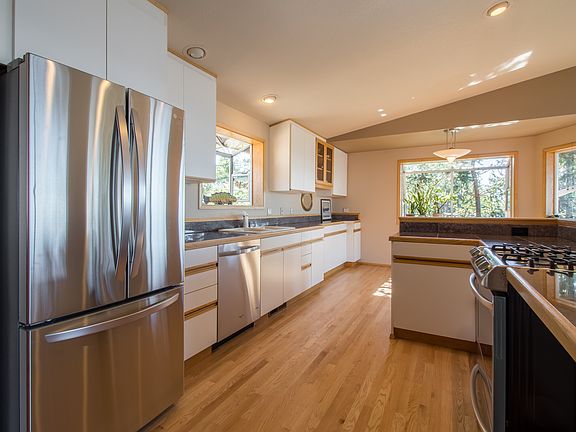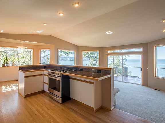 Breathtaking views of San Juan Islands & Georgia Straight. Open concept with vaulted ceiling, Double sided fireplace, expansive windows. All new stainless steel kitchen appliances. New paint & carpets. 2 decks. The 2nd kitchen in the lower level make this home perfect for entertaining guests or use as a mother-in-law suite. Amazing views from both levels.