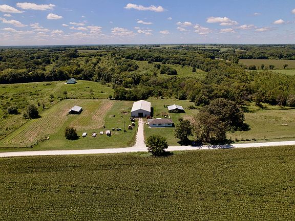 Country home on 11 acres for sale in Caldwell County, MO near Hamilton. This ranch-style home offers 2 bedrooms, 1 bathroom, kitchen, living room, and full basement. The land is currently in hay but could be used for pasture or row crop, making it ideal for horses, cattle, or hobby farming. Three outbuildings provide excellent space: a 50' x 90' metal building, a 36' x 48' barn, and a 26' x 40' barn. Rural water and electric are already in place. With frontage on both Highway U and NE Dustin Road, the property has easy access and the option to divide into smaller tracts. Families will appreciate nearby school options including New York R-IV, Kingston K-14, and Hamilton R-2. Conveniently located less than 10 minutes to Hamilton, 20 minutes to Cameron, 30 minutes to Chillicothe, and under an hour from St. Joseph and Kansas City. #570500